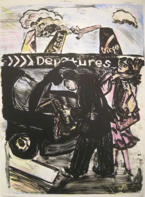"Departures " - Lithograph over mono print, 26x18", edition of 6 unique, 2008 - Printer: Brian Garner, Loki Press - $325