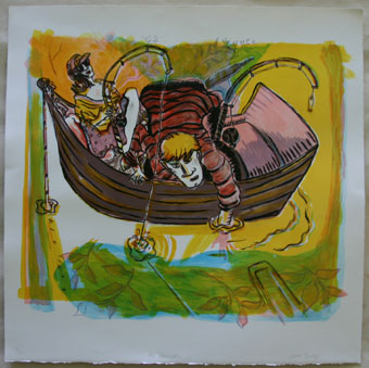 "The Trollers" - Lithograph, edition 20, paper 29.5x29.5", printer Brian Garner, Lowki Press,