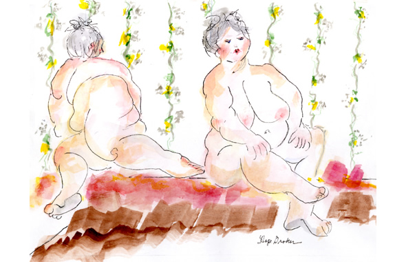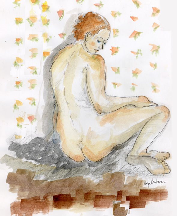 3. Seated Nude with Flowered Wallpaper - 10 "x12" - $300.