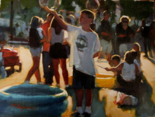 "My paintings grow from observing and interpreting light as it emerges from, surrounds and reflects on everyday people and scenes. They seek to remind us of the beauty of our common surroundings, regardless of where we are. Painting sensitizes me to look for the grace and dignity and order in what I see. My goal as an artist is to reinforce and restore that sensitivity to the viewer.”