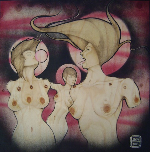 "After-Hours at the Mannequin Factory" - 24" x 24" - Mixed media on wood.