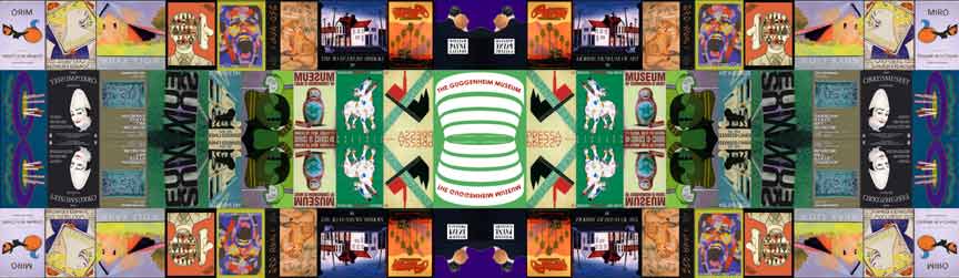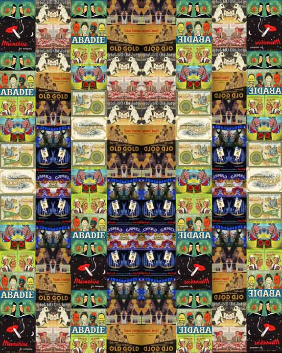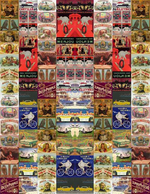 "These collages, created on the computer from old ads, posters and memorabilia of all sorts, were inspired by ideas that are related to the way Albert Barnes created his displays of art work in the Foundation. It is consideration for line and color that dictate the arrangements, although unlike Dr. Barnes' walls, there is also a subjective theme for each poster. The proceeds from the sale of any of these works will go towards helping Friends of the Barnes with their work. They are printed on archival paper with archival ink. "