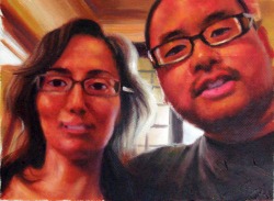 peng and amy pryor at the half king" - 2009 - 7" x 5" oil on canvas - $325.00